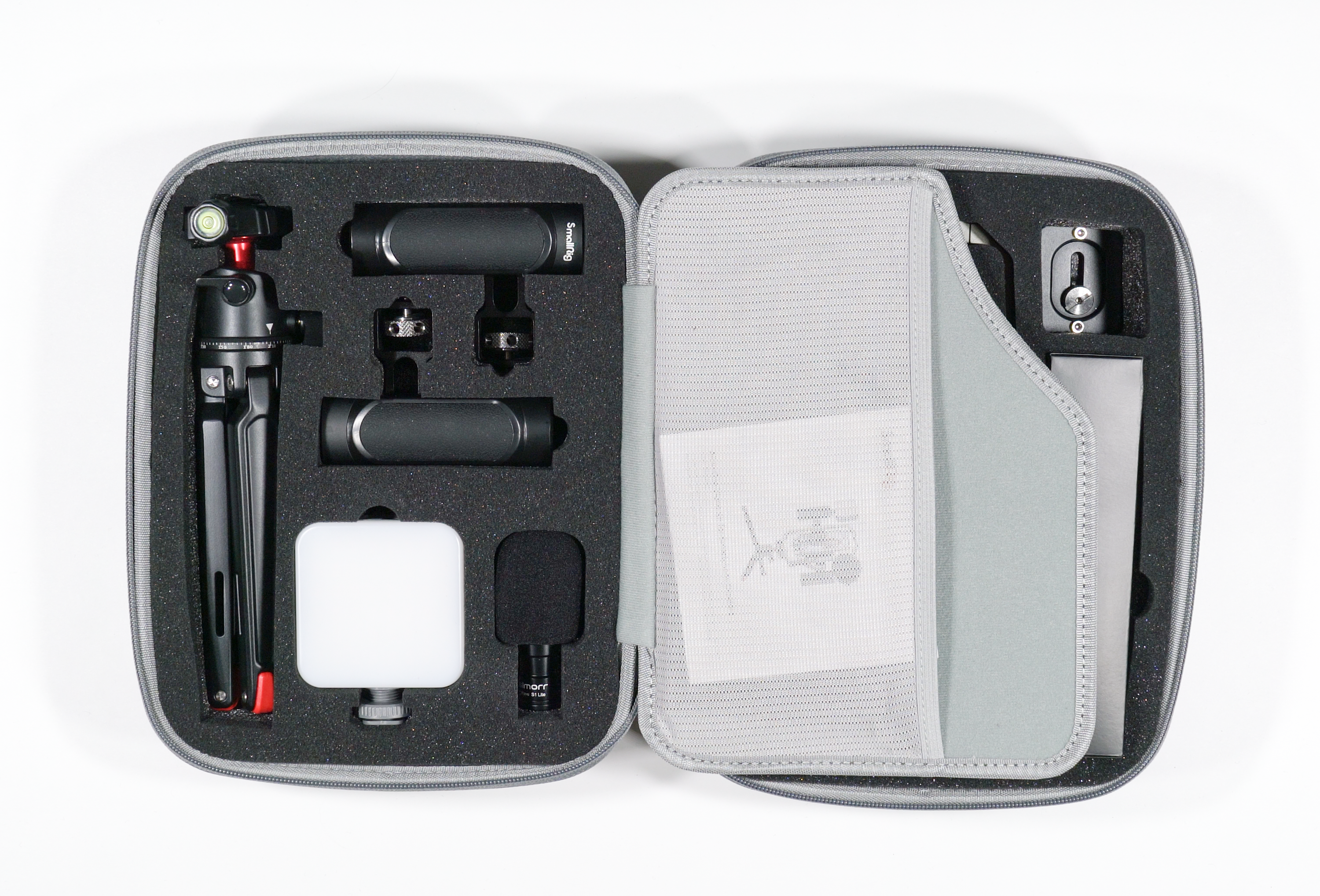 | Состав комплекта | жесткий кофр для хранения и переноски клетка, тренога, держатель пауэрбанка, 2 боковые ручки, «холодный башмак», автономный осветитель, микрофон, 4 торцевые отвертки, фиксатор кабеля (Welcro), 2 винта, зарядный кабель USB Type С, демпфирующий подвес микрофона, ветрозащита из меха, ветрозащита из поролона, аудиокабель с разъемом 3,5 мм для камеры, аудиокабель с разъемом 3,5 мм для смартфона, адаптер «аудио/питание» USB Type С, адаптер «аудио/питание» для iPhone, чехол для принадлежностей, руководство по эксплуатации |