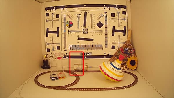 Важное примечание: наличие мерцания в некоторых сценах не является недостатком камеры. Это всего лишь результат работы ламп накаливания, которые расположены близко к тестируемой камере. В следующей таблице представлены участки стоп-кадров с разным уровнем освещенности. Полные стоп-кадры можно увидеть по щелчку мыши.