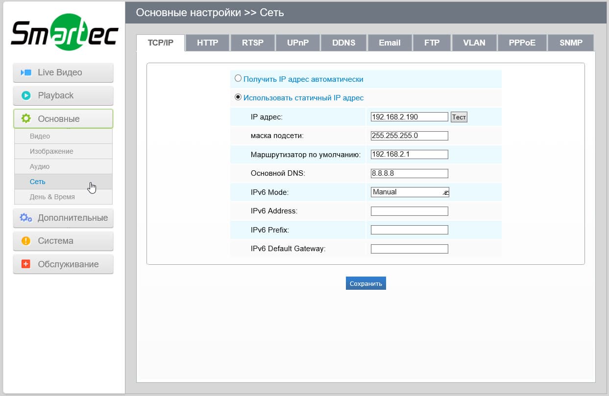 Помимо перечисленного, сетевые настройки камеры позволяют включить ее в виртуальную локальную компьютерную сеть (VLAN) и осуществлять управление с помощью стандартного интернет-протокола для управления устройствами в IP-сетях (SNMP).