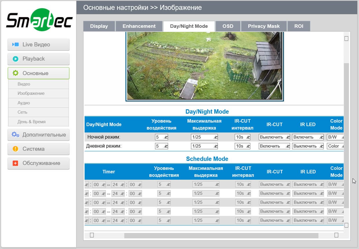 Вывод: заводские настройки выставлены так, что камера включает инфракрасную подсветку и убирает ИК-фильтр при освещенности менее одного люкса. То есть почти в полной темноте. Смело. Однако для того, чтобы устранить излишний смаз движущихся объектов при съемке в полутьме, следует увеличить порог срабатывания автоматики, переключающей камеру в режим Ночь.