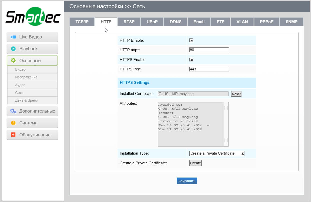 | Программное обеспечение | через Active X браузеры IE/Chrome/Safari, SmartStation |