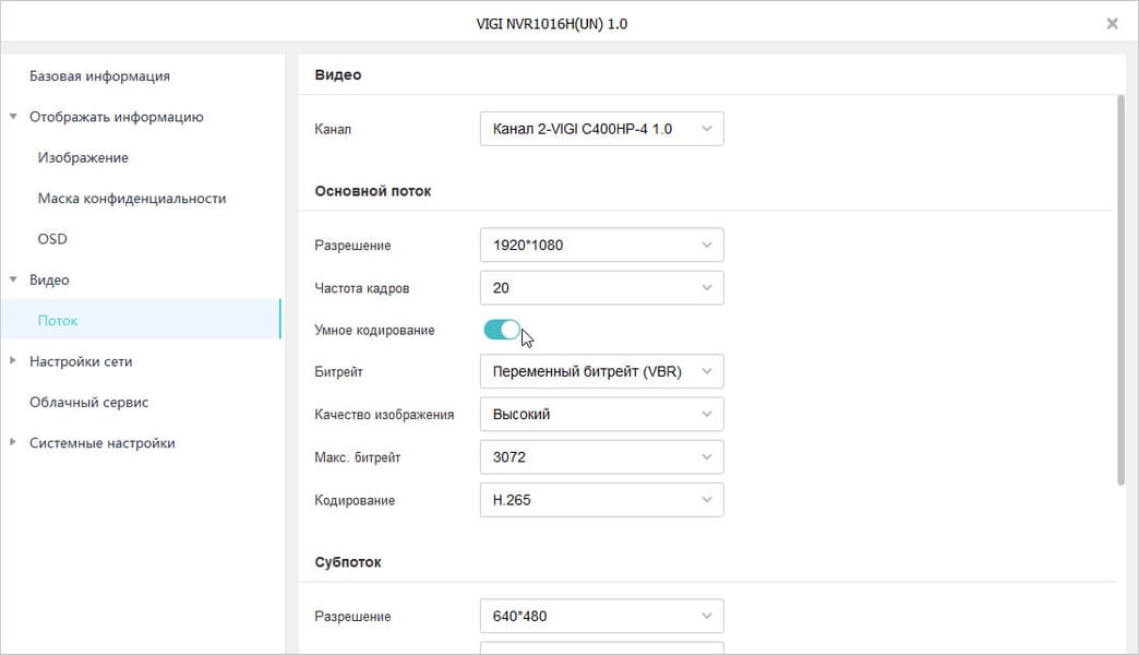 | Поддерживаемые видеокодеки | H.265+/H.265/H.264+/H.264 |