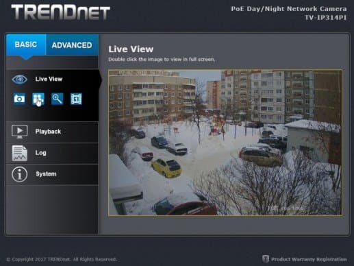 Главное окно веб-интерфейса камеры состоит из панели управления и блока с живым видео, который по двойному щелчку разворачивается во весь экран.