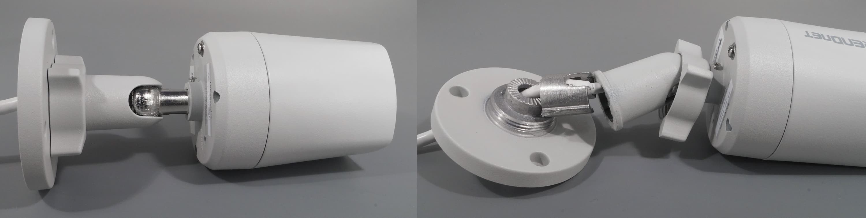 Кронштейн камеры имеет продуманную конструкцию, которая позволила избавиться от дополнительных резьбо-винтовых фиксаторов. Поворотный кронштейн и шаровая опора довольно надежно закрепляются в выбранном положении единственной гайкой. При затянутой гайке самопроизвольное изменение положения камеры практически исключено, если, конечно, не применить силу.