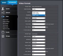 Еще один важный раздел — Video. Под лаконичным названием скрываются инструменты, отвечающие за все характеристики видеопотока: формат, размер, частота кадров, качество, характер картинки, а также ее информационное наполнение. При настройке форматов следует иметь в виду, что первый поток может транслироваться только с кодеком H.264, тогда как во втором потоке возможен выбор между H.264 и MJPEG. Интервал между ключевыми кадрами (I Frame Interval) напрямую влияет на объем передаваемых данных (меньше интервал — больше объем), а также на чувствительность детектора движения (меньше интервал — выше вероятность распознавания быстрого движения, т. к. анализируются только ключевые кадры).