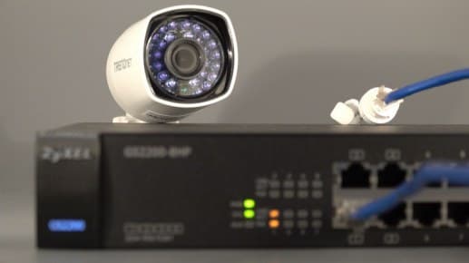 Подключение установленной камеры состоит из единственного шага — нужно всего лишь подсоединить камеру к PoE коммутатору LAN-кабелем. Если, конечно, в наличии имеется коммутатор либо инжектор, способные выдавать по витой паре питание стандарта IEEE 802.3af (максимальное потребление камеры составляет 5 Вт).