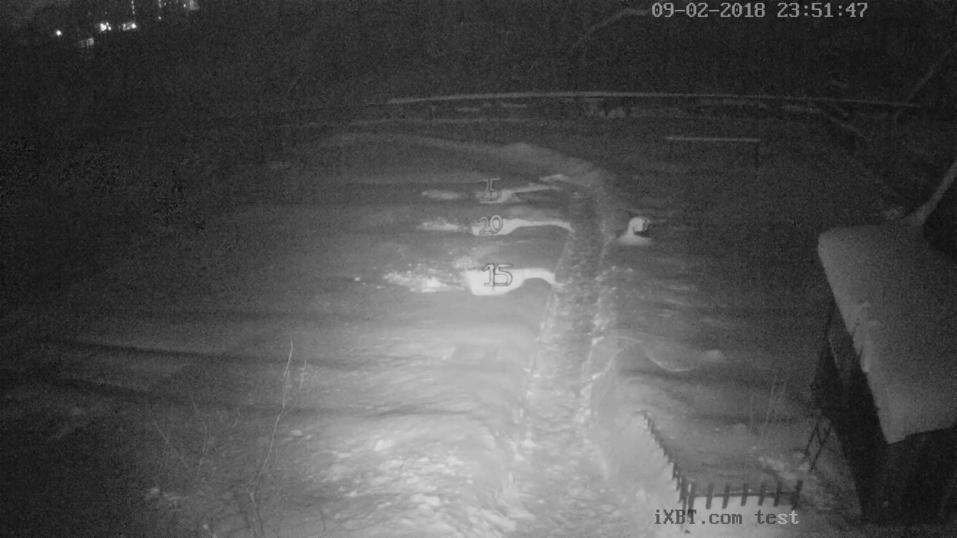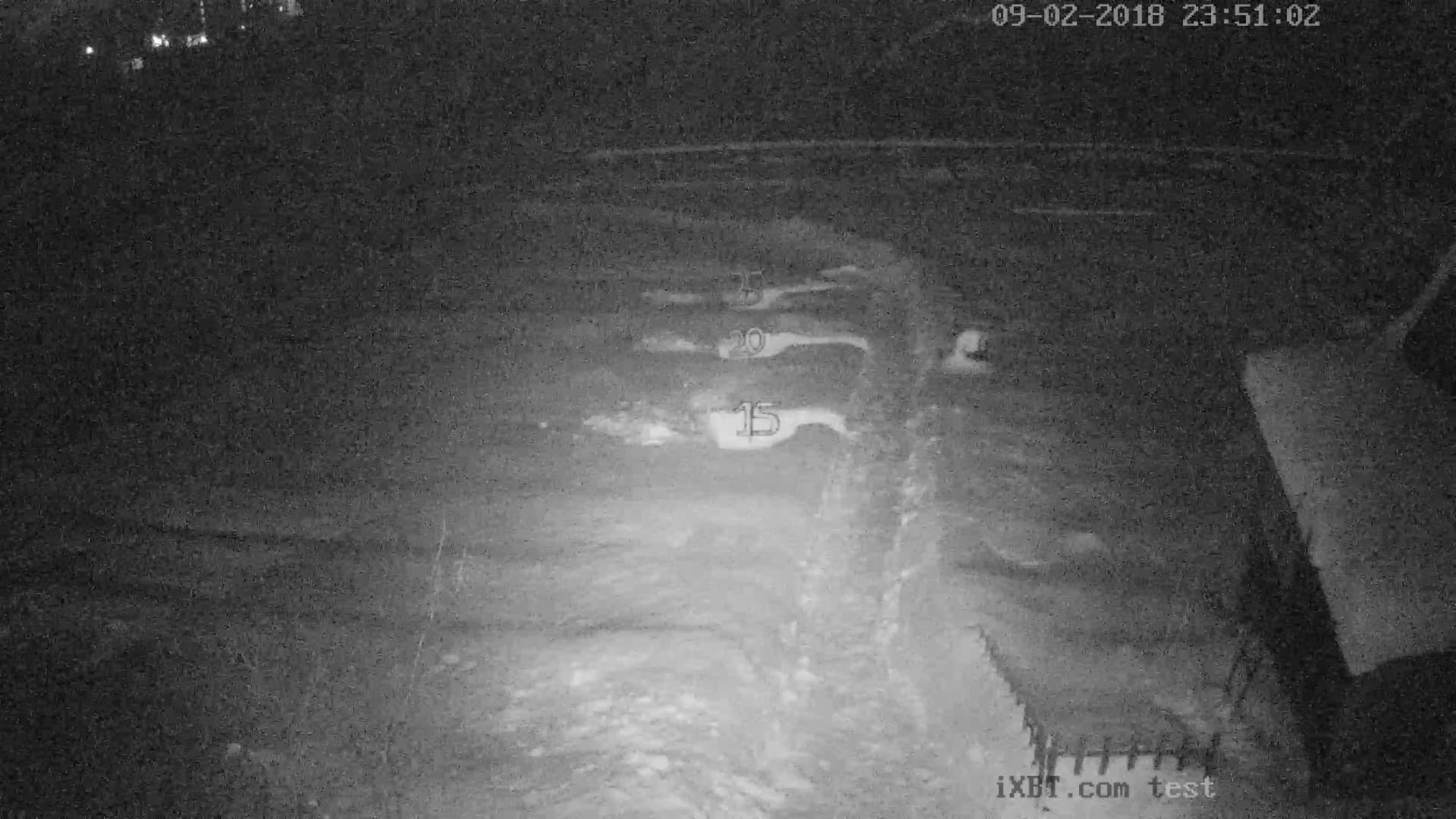 Как видим, встроенная в камеру инфракрасная подсветка в состоянии высветить центральную часть кадра на расстояние до 40 метров. Правда, при отсутствии дополнительных источников света в кадре будет обязательно присутствовать шум — сказывается работа автоматического усиления чувствительности датчика.