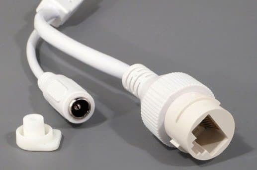 Порт LAN с поддержкой PoE сопровождается разъемом для подачи отдельного питания (сетевой адаптер не входит в комплект камеры и приобретается отдельно). Разработчик предусмотрел силиконовую заглушку на этот разъем питания, чтобы накопившиеся осадки не привели к короткому замыканию. А для того, чтобы загерметизировать LAN-разъем, следует воспользоваться муфтой, которая имеется в комплекте.
