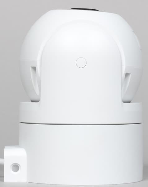 Поворотно-наклонный механизм камеры дает возможность полного обзора всей площади наблюдения: угол поворота камеры составляет 305°, а угол наклона 106°. При том, что сам объектив является широкоугольным.