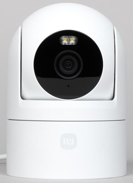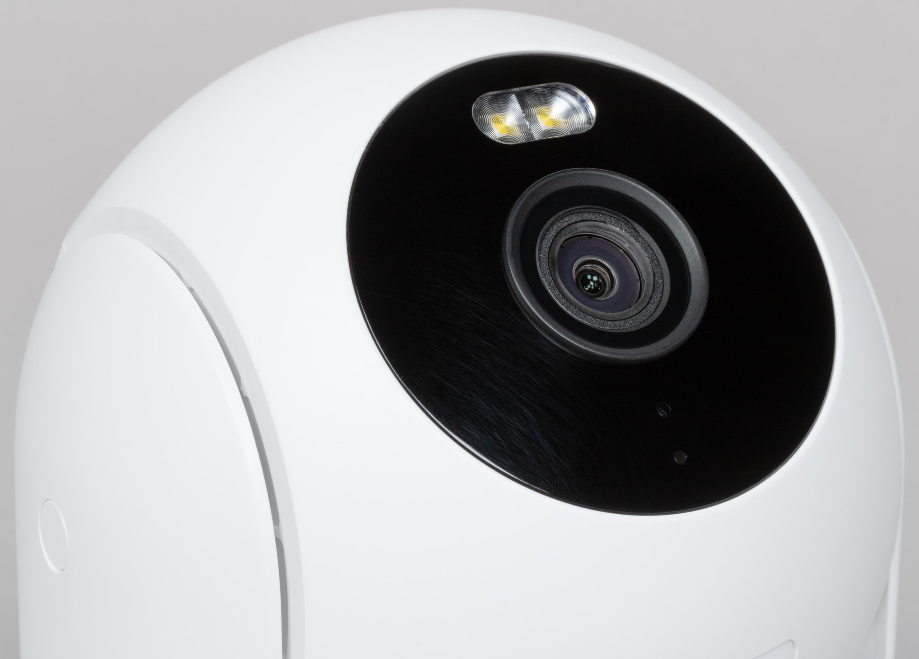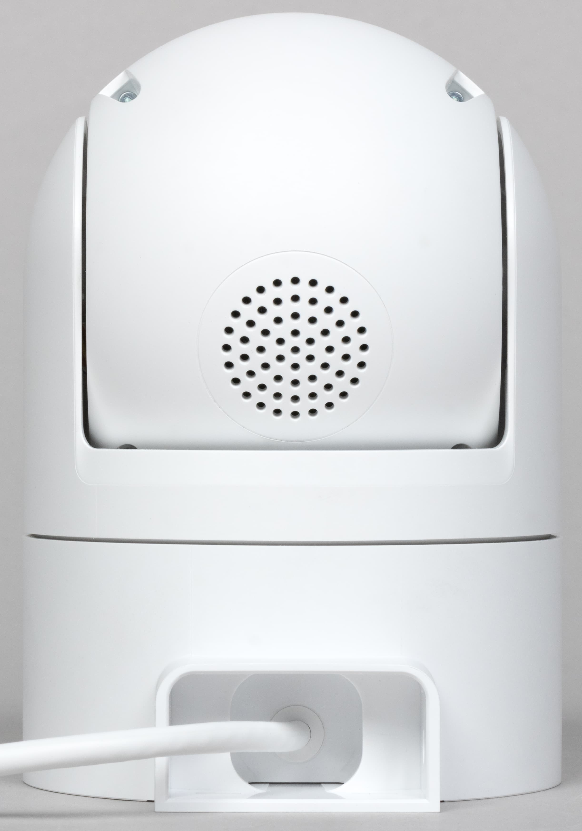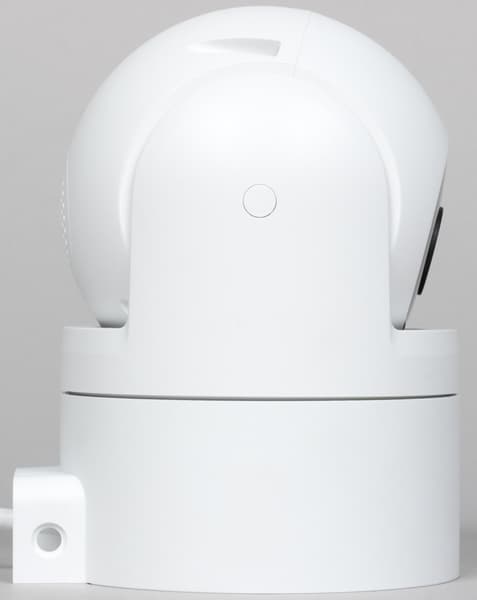 Лицевая сторона камеры содержит стекло объектива, светодиоды подсветки, встроенный микрофон и окошко датчика освещенности — стандартный набор для таких камер. Решетка встроенного динамика расположена в задней части «шарика».