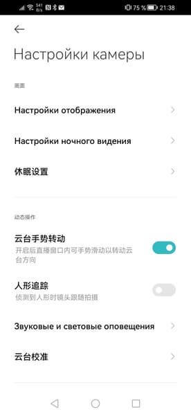 Например, под иероглифами, которые расположены под настройкой ночного видения, прячутся настройки режима сна камеры, где можно выбрать автосон либо задействовать таймер засыпания и пробуждения. Чуть ниже имеются переключатели, которые также озаглавлены иероглифами — эти переключатели активируют работу сервоприводов камеры с автоматическим слежением за движущимися объектами, а также включают возможность поворота камеры в мобильном приложении посредством свайпов в ту или иную сторону прямо на экране видеопотока.