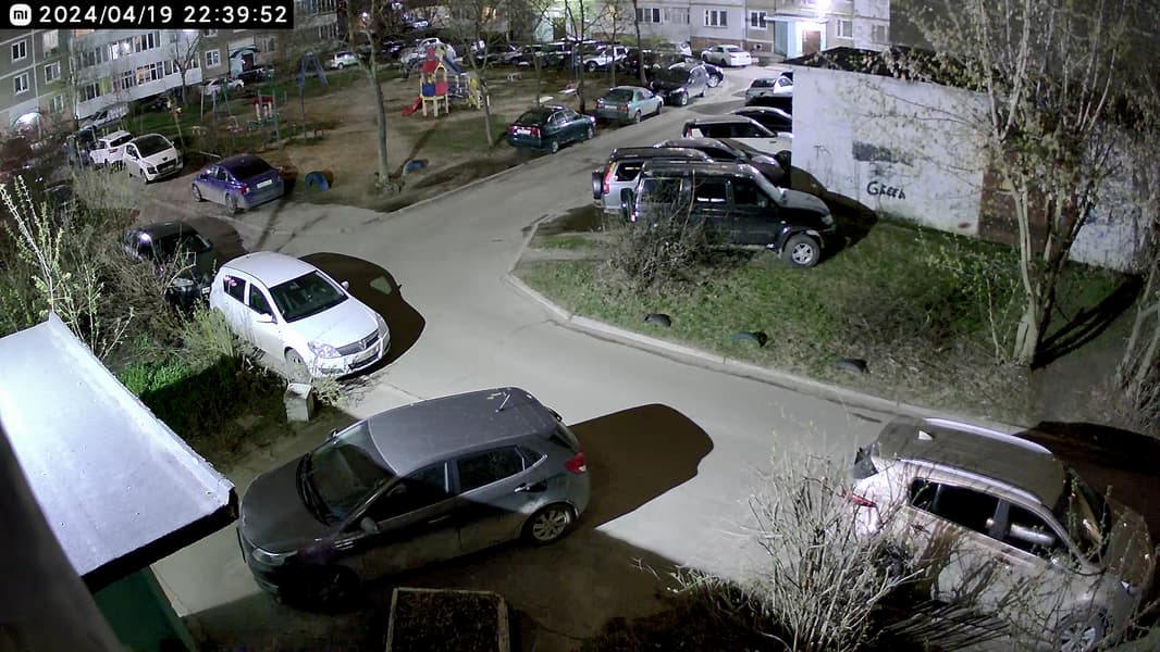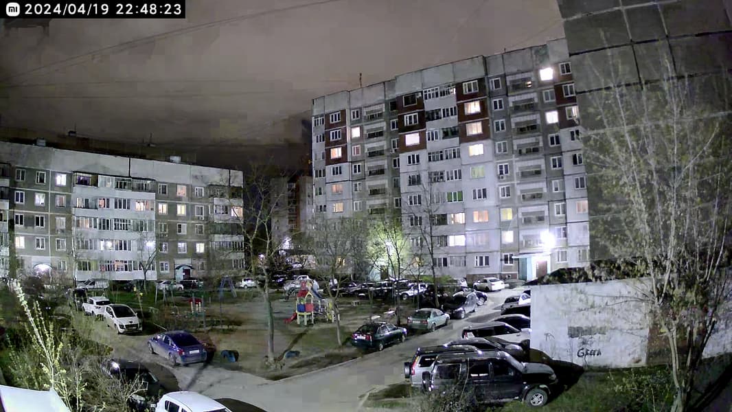 В первой локации, где работал аппарат, двор оказался слишком хорошо освещен, чтобы камера посчитала нужным включать инфракрасную подсветку. На самом деле, конечно, это точечное освещение нельзя назвать хорошим — просто сенсор камеры «слишком» чувствительный, современный. Оказалось, что камера неплохо фиксирует детали как днем, так и ночью при слабой освещенности.