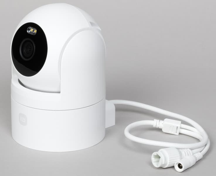 В отличие от многих бытовых IP-камер, рассматриваемый аппарат поддерживает не только беспроводное подключение. Хвостик, через который подается питание, имеет также разъем RJ45 для подключения к локальной сети. Его общая длина составляет 46 см — это очень длинный хвостик, совершенно нехарактерный для большинства камер такой конструкции.