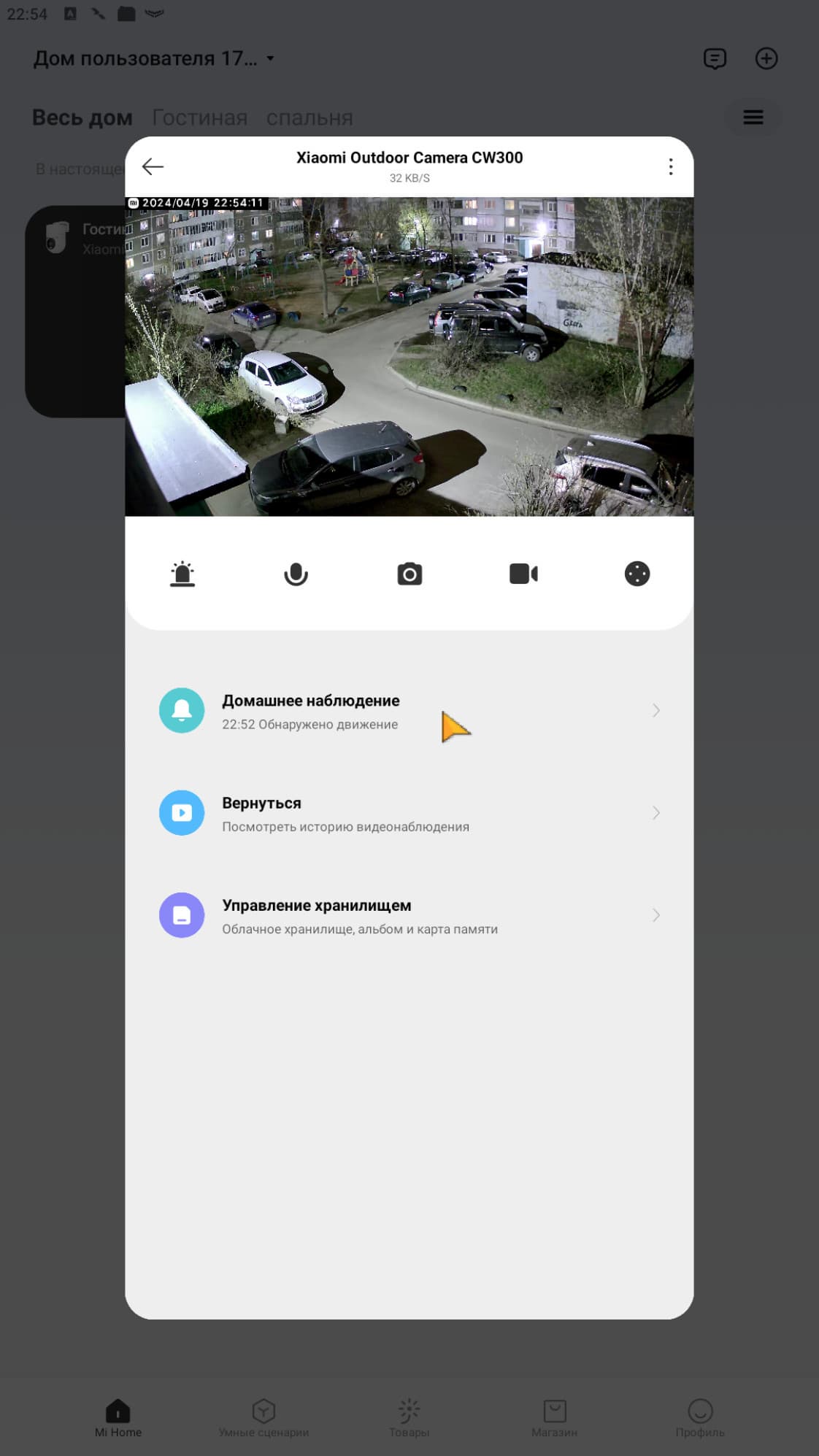 Подключенный аппарат отображается на главной странице приложения Mi Home в виде крупной интерактивной плитки (в приложении она называется карточкой), ее размер и поведение можно изменить в настройках. Некоторые скриншоты в этой статье были взяты из Android-эмулятора, поскольку приложение великолепно в них работает (мы использовали BlueStacks). Плитку можно развернуть почти во весь экран, при этом ниже видеоокна появляются инструменты управления камерой. Описывать их функции вряд ли имеет смысл, характерные иконки достаточно очевидны.