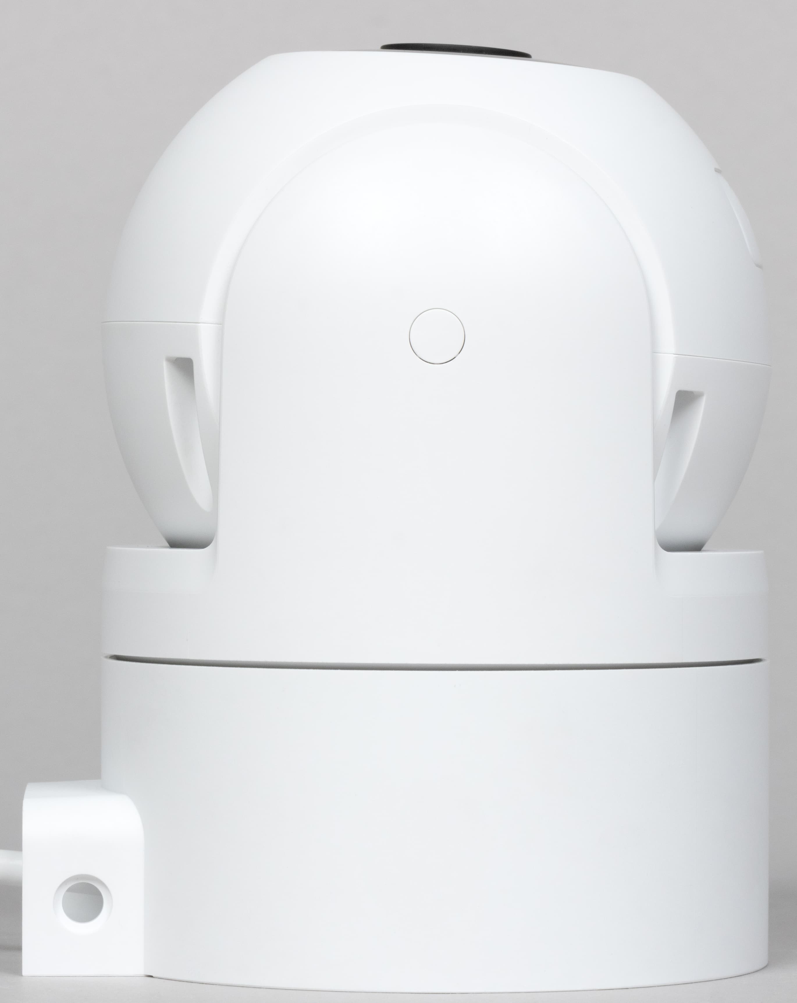 При установке камеры в первую очередь привинчивается крепежная площадка, и лишь затем камера надевается на выступ площадки. Чтобы аппарат не слетел со своего посадочного места, сбоку предусмотрено отверстие для одного болтика, которым вся конструкция и фиксируется. Да, антивандальным такое исполнение не назовешь, но камера и не позиционируется как защищенная от внешнего воздействия недоброжелателей.