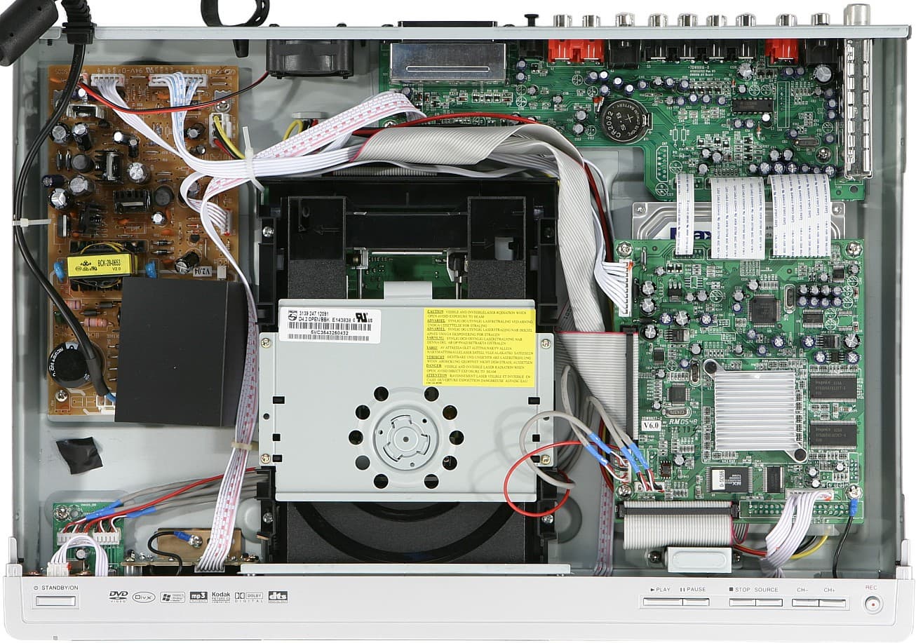 Вскрытие особых открытий не принесло — все главные чипы мы уже видели раньше в других рекордерах. Рекордер основан на мультимедийном процессоре DiMeNsion-8652 от LSI Logic. За оцифровку видеосигнала отвечает микросхема L2146 тоже от LSI Logic. ВидеоЦАПы встроены в DMN-8652.