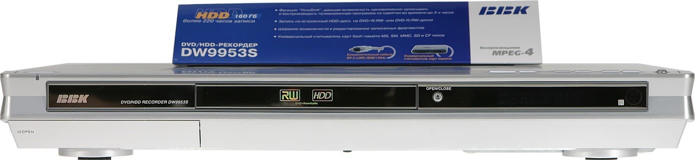BBK DW9953S нельзя назвать продвинутым HDD/DVD-рекордером, так как ему явно не хватает функций по копированию мультимедийного контента с оптических дисков на встроенный жесткий диск. Однако к тому, как он осуществляет запись ТВ-программ и видео со звуком от внешних источников, претензий нет никаких. Да и в качестве мультимедийного плеера этот аппарат работает неплохо. Также стоит упомянуть о USB-интерфейсе, который позволяет легко и просто расширить круг понимаемых рекордером носителей мультимедийных файлов. Особо отметим отличную комплектацию, в которую помимо обычного набора входит кардридер, USB-удлинитель и DV-кабель.
