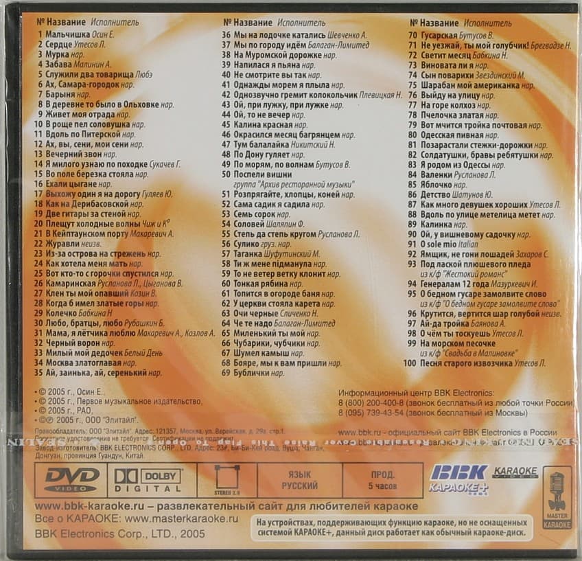 На диске есть две аудиодорожки: на одной только музыкальное сопровождение, на второй — в правом канале голос певца, в левом — музыка.
