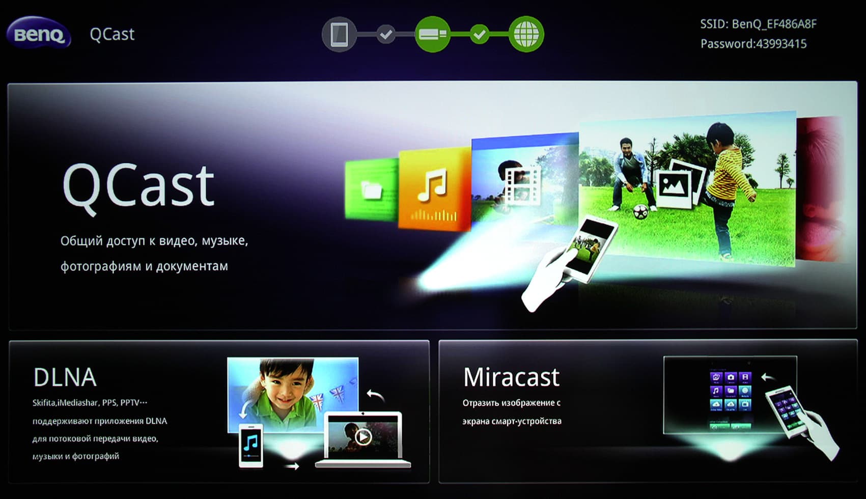 - Возможность скрытой установки адаптера BenQ QCast