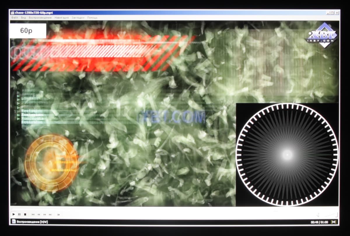 Дальнейшие тесты проводились при подключении к компьютеру при расстоянии между передатчиком и приемником порядка 3 м. С компьютера сигнал Full HD без каких-либо проблем передается с частотой до 60 кадр/с включительно. Определенный в тестах прирост задержки вывода в этом режиме относительно прямого подключения по HDMI составил не более 1 мс, как и обещал производитель. Фотография ниже, полученная с выдержкой в 1 с, доказывает отсутствие пропуска кадров в режиме 1080p при 60 Гц: