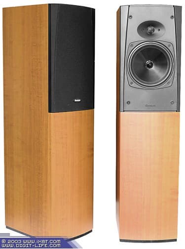 Двухполосная акустическая система напольного типа с тыловым расположением порта фазоинвертора. Визуально передняя панель колонки разделена на две части: верхнюю часть занимает пластиковая накладка, к которой и крепятся динамики, а нижняя часть передней панели закрыта дополнительным толстым листом MDF со слегка закруглённой фронтальной плоскостью. Общая толщина нижней половины передней панели АС составляет около 6 (!) сантиметров.