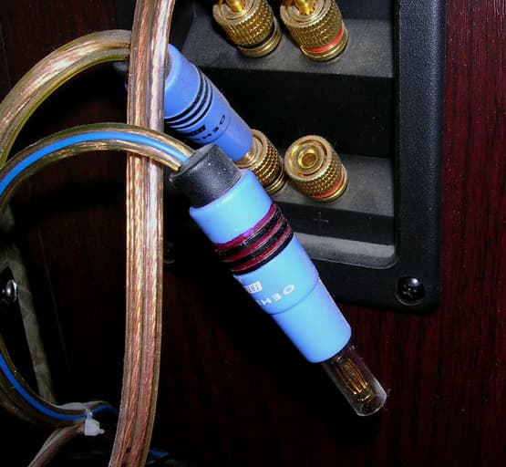 Акустический кабель должен быть достаточно удобным для монтажа (в частности, мягким) и сравнительно легким для того, чтобы не сломать выходные клеммы усилителя и не опрокинуть акустику на пол. Для подключения к АС лучше применить лопатки соответствующего размера, но подойдут и «бананы». Не рекомендуется использовать неизолированные бананы, так как возрастает риск короткого замыкания в цепи нагрузки усилителя. Самые хорошие изолированные «бананы» стоят около $10 за пару.