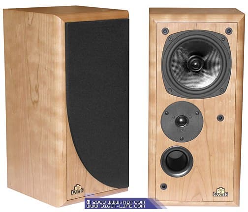 Двухполосная акустическая система полочного типа. Дизайн передней панели можно было бы назвать классическим, если бы не свокбразная форма защитной решётки (это фирменная черта почти всех колонок Castle), а также «перевёрнутое» расположение динамиков, когда «пищалка» находится под НЧ/СЧ драйвером. К тому же, высокочастотные динамики смещены немного в сторону, причём на левой и правой АС сделано это зеркально. Пользователь может выбирать по своему вкусу, как расположить АС: ВЧ динамиками наружу или внутрь, тем более, что никакой маркировки, говорящей о том, правая или левая это колонка, нет. Однако, во время прослушивания мы ставили АС так, как можно увидеть на фотографии — то есть, ВЧ драйверы были «внутри» стереобазы. Ещё один немаловажный момент — фронтальный порт фазоинвертора, позволяющий при необходимости ставить колонку довольно близко к стене или даже в нишу.