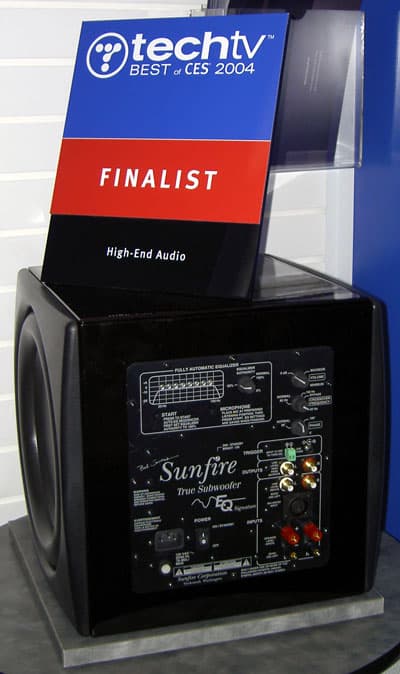 Сабвуфер, созданный талантливым инженером и руководителем фирмы Sunfire, ее президентом Bob Carver, стал финалистом CES в категории High-End аудио из-за специальной конструкции диффузоров, позволяющих конусу динамика менять положение в пределах ±63 мм, «двигая» 3,86 литра воздуха, что почти в 4 раза больше, чем перемещает стандартный 15″ динамик. Такой сабвуфер c точностью воспроизводит низкие частоты, начиная с 18 Гц.