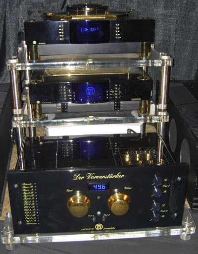 Фирма MBL, как обычно, продемонстрировала роскошнейшего вида аппараты, которые, вопреки стандартному мнению о том, что яркая упаковка обычно скрывает не самый лучший товар, звучат на уровне своего внешнего вида. Я убедился в этом уже в третий раз, слушая систему с Radialstrahler.