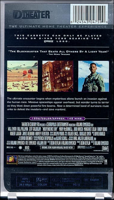 Мы тестировали (известный Terminator 2 не был включен в список из-за его записи не с мастера high definition, который стал доступен лишь после выхода extreme DVD — впрочем, ре-релиз на D-VHS не за горами) такие кассеты: