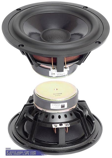 НЧ/СЧ динамики модели Blue 5005 AE не отличаются от оных в «обычной» Blue 5005: держатель выполнен из полимера, подвес — из мягкой резины. Диффузор изготовлен из бумаги, с обратной стороны армирован тканью. Помимо этого, он пропитан каким-то невысыхающим (пальцы слегка прилипали к диффузору) составом, напоминающим аэрогель.
