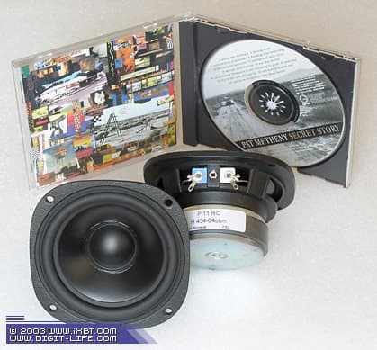 И если по первой фотографии судить о размерах АС весьма сложно, поскольку из-за относительно небольшого диффузора ВЧ драйвера (всего 19 мм, как и у модели Scepter), от чего вся АС выглядит несколько больше, чем есть на самом деле, то при непосредственном сравнении этой акустической системы с обыкновенным компакт-диском сразу становится видно, что размеры Menuet II действительно невелики.