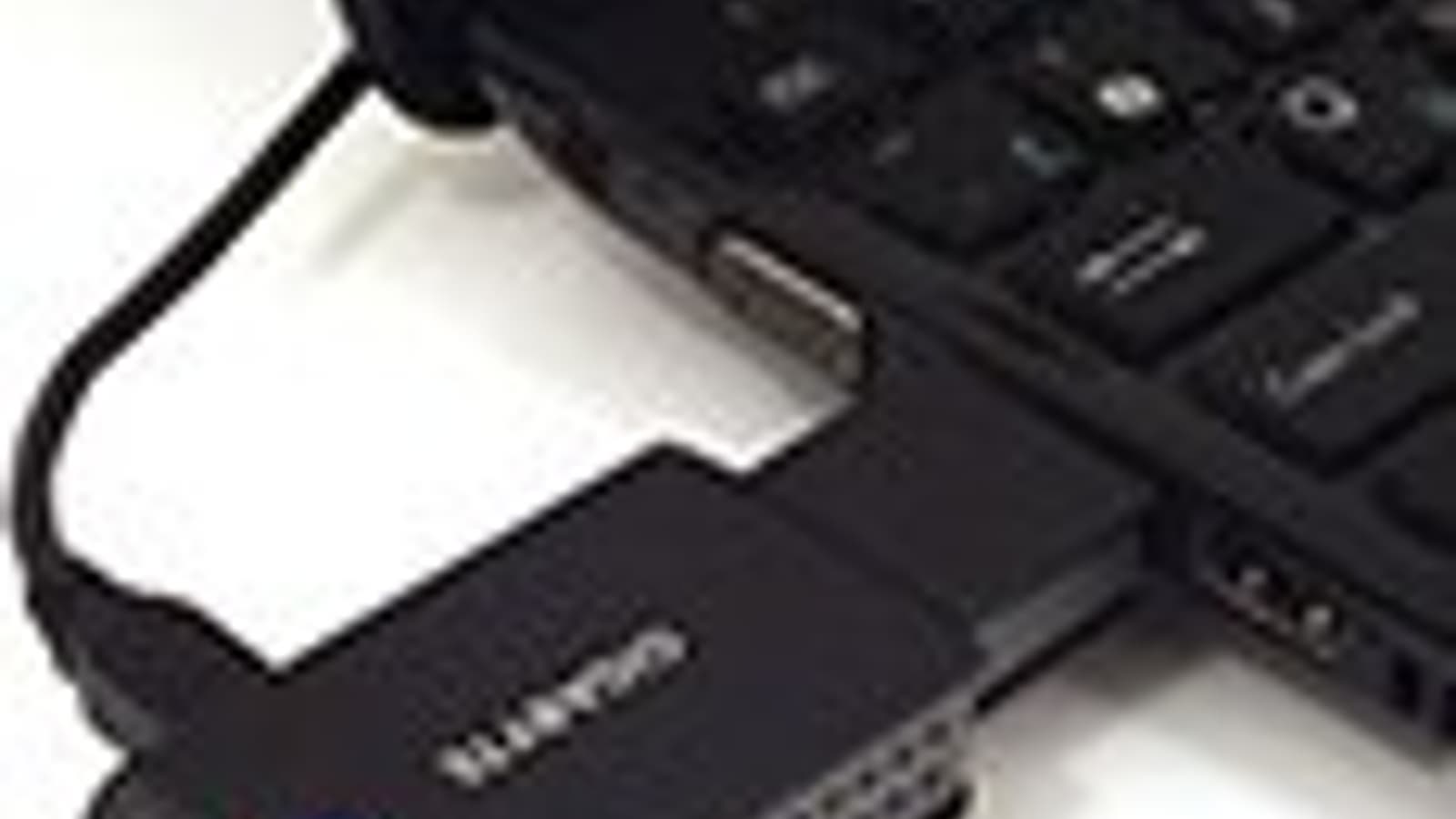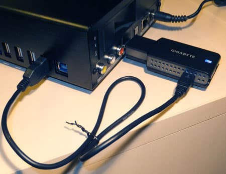 При подключении передатчика к ноутбуку следует иметь в виду, что длины прилагаемого USB-кабеля может не хватить, если свободный и доступный USB-порт расположен на другой стороне корпуса ноутбука. На предыдущем фото видно, как передатчик, вставленный в HDMI-порт нетбука, перекрыл своим корпусом доступ к USB-порту, находящемуся, как назло, впритык к HDMI. Пришлось тянуть USB-кабель к другой стороне нетбука, где имеется два свободных USB-порта. В итоге провод оказался натянутым до состояния «только-только». Впрочем, с медиаплеерами такая проблема вряд ли возникнет, ведь большинство из них спроектированы без оглядки на компактность. Да и в любом случае, ничто не мешает использовать более длинный кабель.