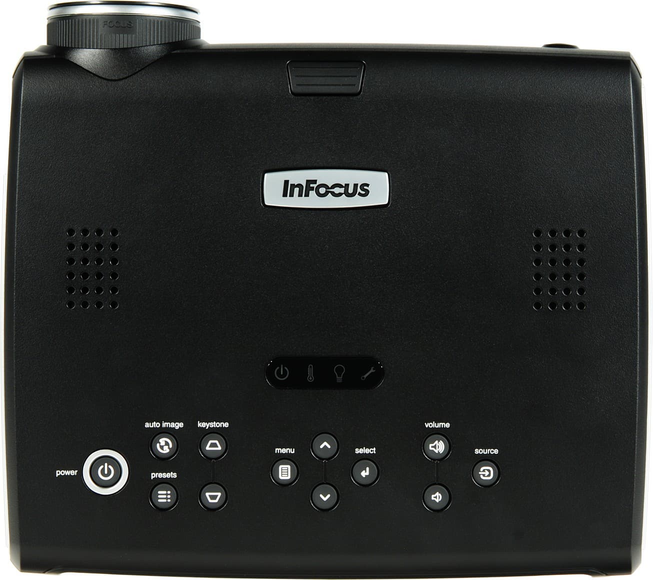 Меню традиционно для InFocus сложное и неоправданно многоуровневое. Шрифт удобочитаемый, но линии символов имеют толщину в 1 пиксель, поэтому буковки выглядят слишком мелкими. Навигация удобная, но требует привычки. При изменении параметров, влияющих на изображение, страница с настройками остается на экране, что затрудняет оценку происходящих изменений. Есть русская версия меню, русификация хорошая.
