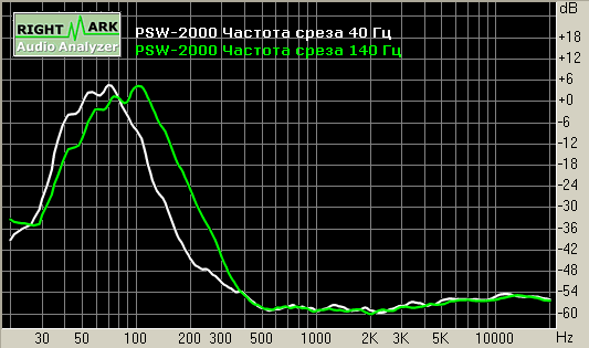 По графикам АЧХ видно, что работает фильтр высоких частот (ФВЧ) вполне эффективно. Уровень искажений, в целом, довольно низок. Заметный их рост наблюдается только в области самых низких частот, где часто уже сама комната оказывает заметно большее влияние на звук, чем возросшие искажения, поэтому ничего страшного в данном случае нет. Напротив, такая картина вполне соответствует классу басовика (розничная цена сабвуфера почти $350). Что касается замеров АЧХ при установках регулятора среза ФВЧ на минимум и максимум, то здесь можно отметить некоторое несоответствие реального диапазона и подписей на регуляторе. На деле диапазон регулировок близок к 60-100 Гц, а не к 40-140 Гц. Тем не менее, согласовать корректно сабвуфер и сателлиты можно вполне, а это самое главное.