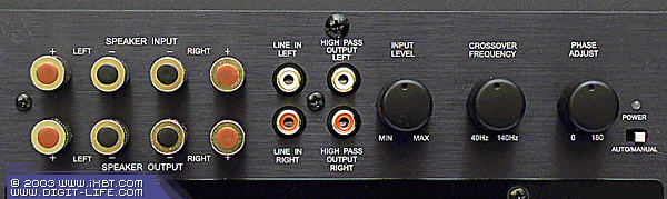 Регулировки традиционные: чувствительность по входу, частота среза фильтра высоких частот (от 40 до 140 Гц) и фаза. Регулятор фазы — плавный, а не дискретный: можно точнее подстроить звучание в случае не очень удачного расположения сабвуфера. К сожалению, на регуляторе частоты среза фильтра высоких частот нет ни отметок, ни подписей. Промаркерованы только крайние положения: 40 Гц и 140 Гц, поэтому приходится настраивать только на слух. Понять логику производителя не сложно, ведь часто подписи на регуляторе не соответствуют реальной частоте среза, так что зачем лишняя дезинформация?