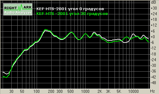 Такое расположение драйверов позволяет получить более широкую диаграмму напрвленности. Это подтверждается и нашими измерениями, где график АЧХ, полученный при измерении АС на оси динамиков, весьма незначительно отличается от графика АЧХ, полученного при замерах под углом 30 градусов в горизонтальной плоскости. К тому же, такое расположение драйверов приближает акустическую систему к точечному излучателю, позволяя более корректно формировать звуковую сцену за счёт существенно меньшего фазового сдвига, часто возникающего при раздельном размещении СЧ и ВЧ драйверов в корпусе АС. Само собой, что концепция UniQ у KEF одна, но реализуется она немного по-разному, в зависимости от класса и цены АС. В HTS-2001 не используется щёлковый или титановый купол высокочастотника, да и диффузор НЧ/СЧ-динамика имеет относительно небольшой диаметр (10 см), что, впрочем, воспринимается совершенно нормально для акустики такого класса.