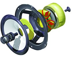 Двухполосная акустическая система. Корпус АС выполнен из алюминиевого сплава. В данных АС компания KEF применила свои традиционные коаксиальные драйверы, выполненные по фирменной технологии UniQ, где низкочастотный динамик и высокочастотный распологаются на одной оси, оставаясь при этом полностью независимыми друг от друга.