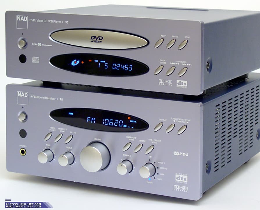 В данной статье мы рассмотрим подобранный комплект, включающий в себя компактный AV-ресивер L-75 и DVD-плеер L-55 — компоненты, выпускаемые английской компанией NAD Electronics. Они будут работать в связке с набором акустических систем KHT-2005 от английской же компании KEF. Компоненты и акустические системы объединяет элегантный внешний вид и компактное исполнение.