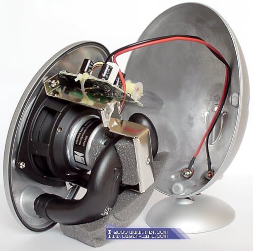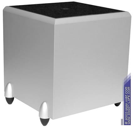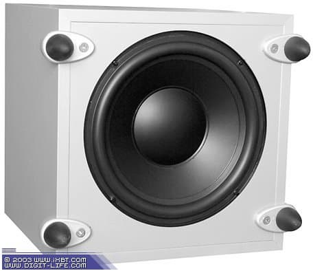 Акустическое оформление — закрытый корпус. 25-сентиметровый динамик расположен на днище сабвуфера.