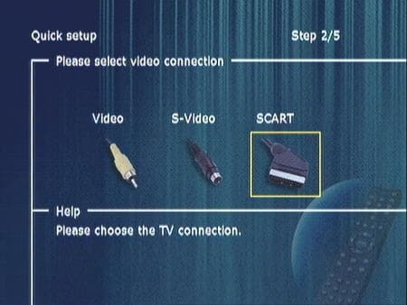 Поскольку Российского флага там пока еще нет, выбираем английский и жмем ENTER Попадаем в меню выбора подключения видео к телевизору. У нас подключен СКАРТ, его и выбираем.