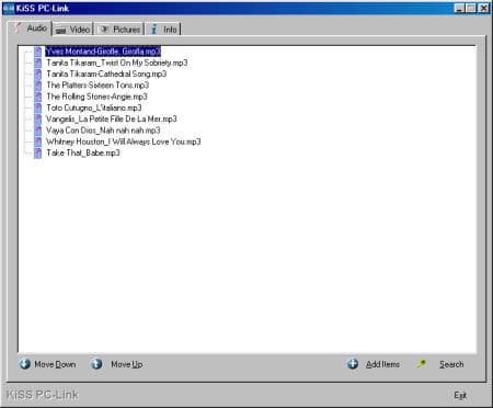 Запускаем на компьютере программку PC Link снова, выбираем первые попавшиеся звуковые файлы с локального диска.