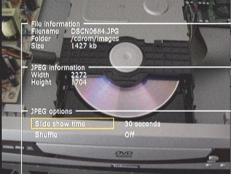 Несколько разочаровало воспроизведение диска со смесью файлов. Там в разных каталогах и в корне было собрано множество Mp3 и JPG файлов. Так вот этот диск был опознан как диск с картинками и увидеть на нем Mp3 файлы нам не удалось никак. Каталоги с музыкой отображались пустыми. Надеемся, что эта досадная недоработка будет вскоре исправлена.