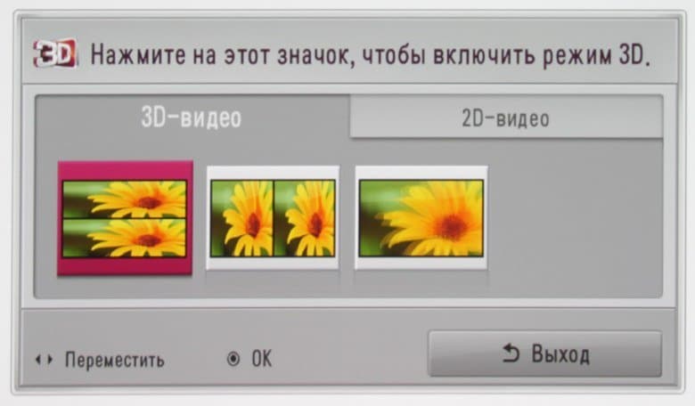 Заявлено, что поддерживаются стереоскопические сигналы с чередованием кадров, с горизонтальной или вертикальной стереопарой и упакованные кадры (за дополнительной информацией стоит обратиться к руководству пользователя, которое, на удивление, подробное).