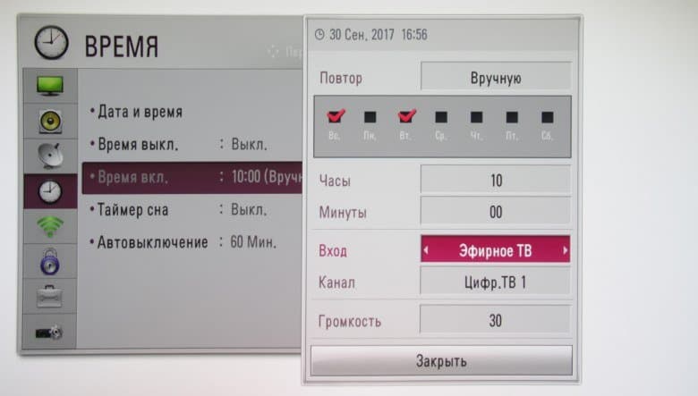 Есть функции автоматического отключения проектора после заданного интервала отсутствия сигнала или нажатий на кнопки. Также можно активировать выключение проектора через заданный интервал времени. Расширенные возможности предоставляют функции выключения и включения в заданное время в заданный день недели. Для включения можно указать, какой источник (и ТВ-канал для ТВ-тюнера) должен выбираться при включении и на какой громкости. Дата и время устанавливаются или вручную, или по данным ТВ-станции.