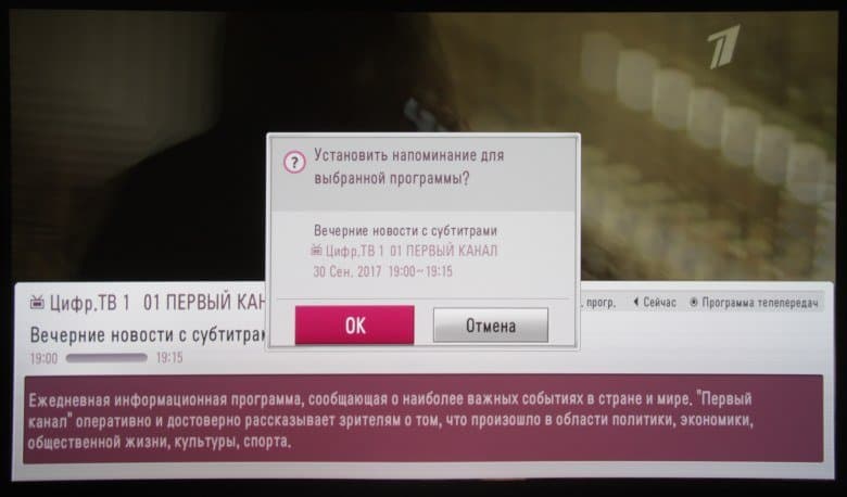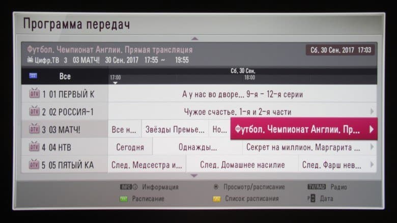 Есть хорошая поддержка электронной программы передач — можно посмотреть, что именно идет на текущем и других каналах, и запрограммировать напоминание о выбранной передаче (эту функцию мы не тестировали, поэтому не знаем, работает ли она тогда, кода проектор находится в режиме ожидания).