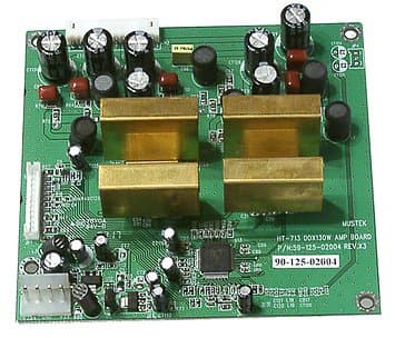 DVD контроллер собран на чипсете CT9928/CT99420. ВидеоЦАП интегрированный, данных о его параметрах нет. АудиоЦАПы и аудиоАЦП внешние, марки Burr-Brown (производства Texas Instruments Inc) соответственно PCM1723 и PCM1801 (АЦП, вероятно, используется для оцифровки сигнала с тюнера). Справа находится плата усилителя мощности. Усилитель состоит из аудиопроцессора DDX-8228 и двух трехканальных усилителей мощности DDX-2050. Этот набор создан специально для технологии «домашний кинотеатр» фирмой APOGEE TECHNOLOGY INC, подробнее о технологии DDX можно прочитать по этой ссылке.