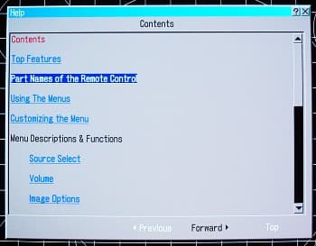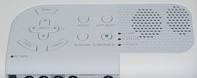 Единственная претензия это то, что круглая четырехпозиционная кнопка SELECT чуть более чувствительна, чем хотелось бы, приходится привыкать. Лазерной указки нет и управлять презентацией на компьютере с помощью пульта нельзя, тут просматривается явная ориентация на домашний кинотеатр. Дальность действия вполне достаточная, чтобы управлять проектором как через отражение ИК-сигнала от экрана так и направив пульт непосредственно на один из двух ИК-приемников.