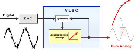Технология VLSC представляет собой один из методов фильтрации сигнала при цифро-аналоговом преобразовании. Действие системы основано на введении динамического интегрирующего звена с отрицательной обратной связью, которое отрабатывает поступающий сигнал с необходимой для фильтрации помех инерционной характеристикой. Таким образом удаётся сохранить в сигнале больше деталей, по сравнению с традиционными пассивными НЧ-фильтрами.