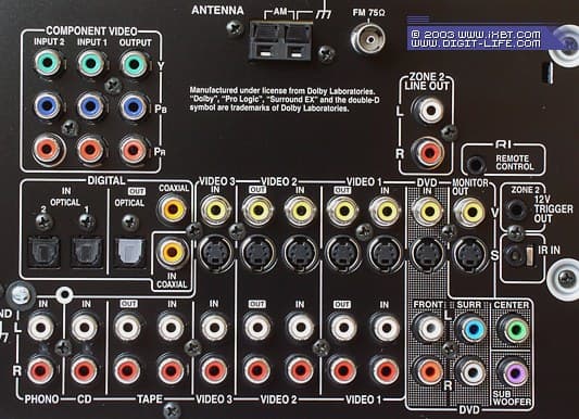 | Аналоговые | аудио: 3 стереовыхода; разъём для наушников; стереовыход для «зоны 2» (RCA); выходы предварительного усилителя для всех каналов (7.1), а также для «зоны 2» (стерео) видео: 3 композитных (RCA); 3 S-Video; 1 компонентный |